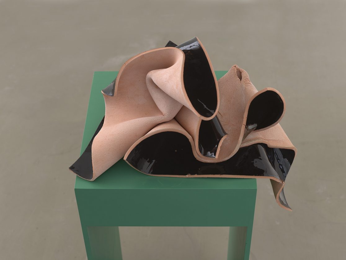 Rolled out, folded, rolled, thrown. A concentrated preparation combined with a short moment that determines the result. Make an incision and strike. Since 2008 ceramics have formed a new field in the artist’s work. But her use of ceramics, one of the oldest cultural techniques, does not result in sculpted figures or thrown pots. Instead, the material is worked from a technoid perspective – fingerprints and personal traces of the work process are avoided. Decisions and quick actions fix the moment in the material, which is pushed to the limits of its constructive possibilities.